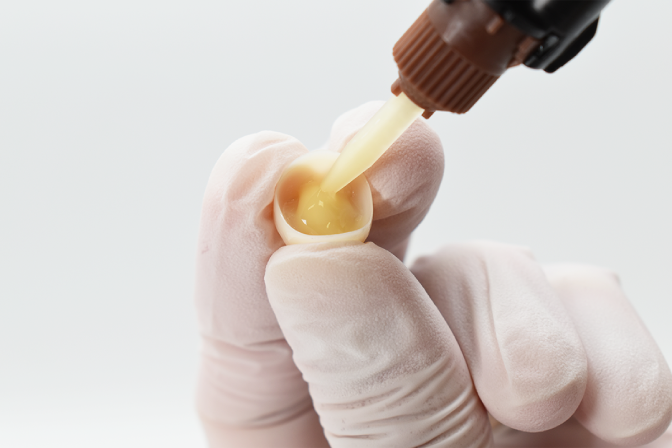 また、アドヒーシブに含まれているタッチキュアも重要な要素です。それぞれのアドヒーシブおよびレジンセメントにおける化学重合成分が非常に強力であるため、脱離を防ぐ効果があると考えています。