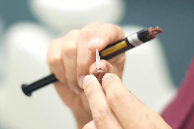 アドヒーシブとセメントの2つを用意するだけでよいので、準備もシンプルです。これによって、準備をするスタッフの負担も軽減されますし、私自身も手順が簡単なので、全体的な治療時間が短縮されます。
